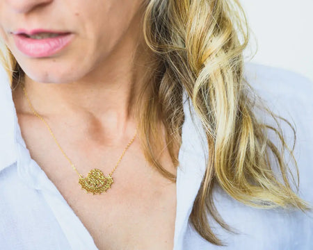 Glint & Gold’s necklaces are designed to be one-of-a-kind statement pieces that add vibrancy to your look. Every necklace is crafted with precision and attention to detail ensuring its uniqueness while promoting harmony between nature and fashion. Our pieces allow you to tap into the layering necklace trend, so browse and pair a couple together for maximum impact!